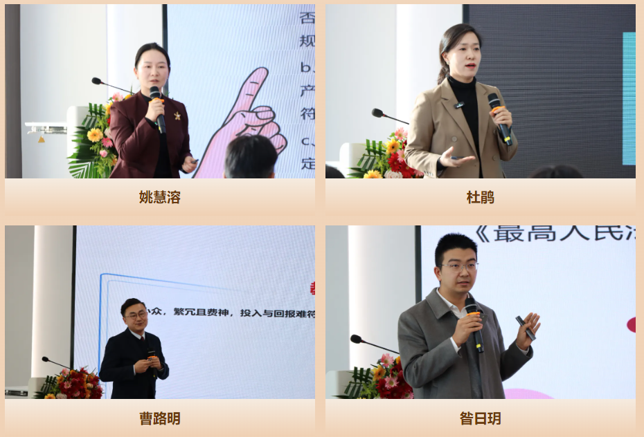 下午的议程聚焦细分领域实务精讲。姚慧溶、杜鹃、曹路明、昝日玥四位资深律师分别围绕校园安全责任、婚姻家事实务、企业环境责任“绿色底线”、农用与药用植物买卖合同效力认定等热点难点问题,展开案例详实、贴近实操的分享。现场交流踊跃,观点碰撞热烈,充分体现了培训“务实、致用、共进”的导向。