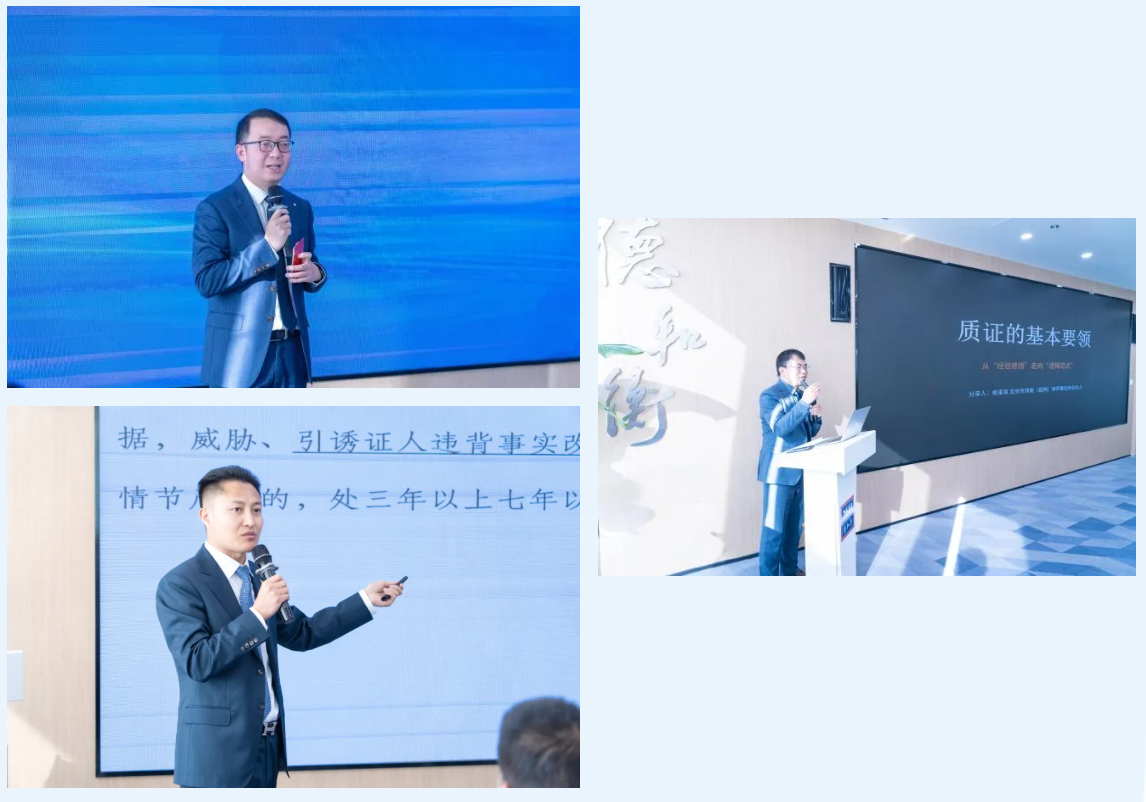 下半场活动聚焦法庭质证、举证环节,由云南凌云律师事务所昆明办公室高级合伙人党兴成主持。北京德和衡(昆明)律师事务所高级合伙人麻清诚以《辩护人取证、举证:规范与实践》为题,围绕执业安全和执业规范,以具体亲办案件为例,详细交流了刑事案件中辩方取证和举证的方式方法。昆明市律师协会青年律师工作委员会副主任侯里易则以《质证的基本要领》为主题,旁征博引地论述了质证的理论逻辑和内在要求,构建以证据为核心的辩护基础,避免无视证据的强行说理。