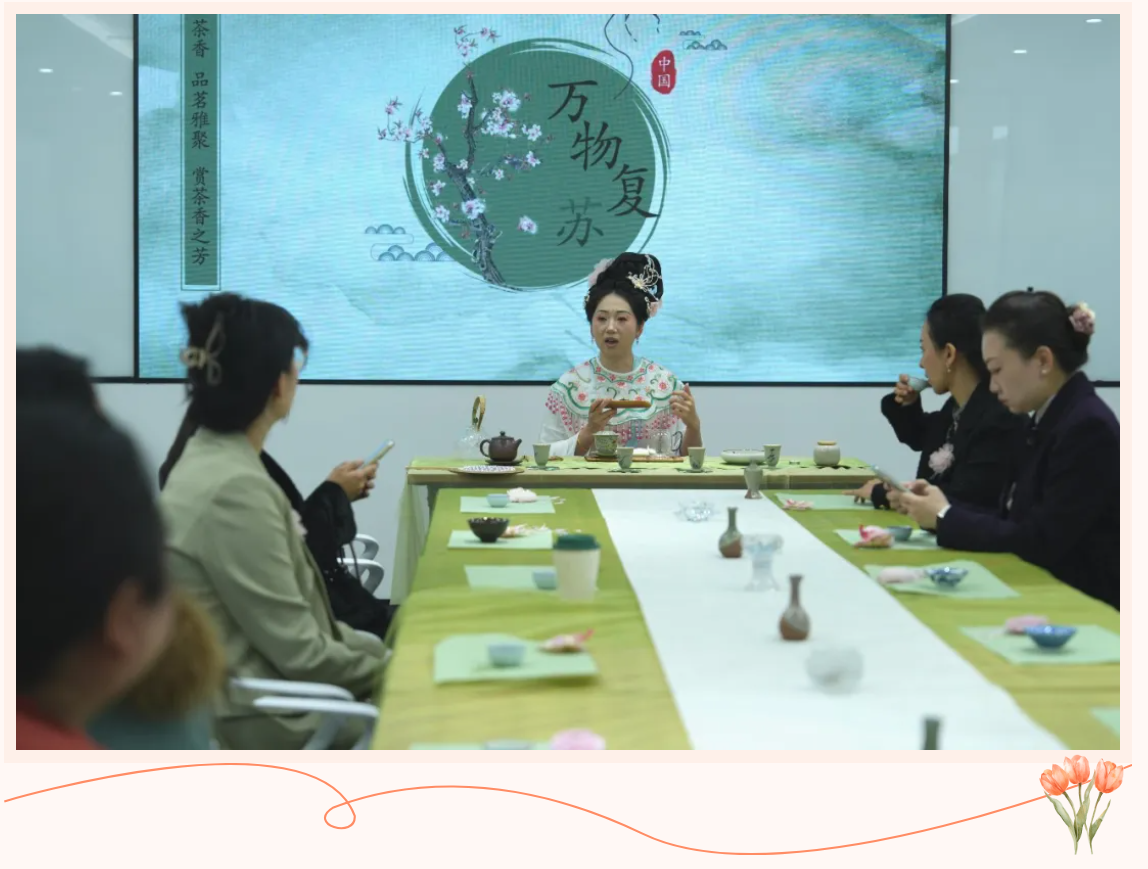 市律师协会女律师工作委员会委员、国家二级茶艺技师李佳楠带领大家体验普洱茶冲泡技艺,从温杯、醒茶到出汤、品茗,女律师们在氤氲茶香中感受传统茶文化的温润雅致,体悟慢生活中的宁静与从容。
